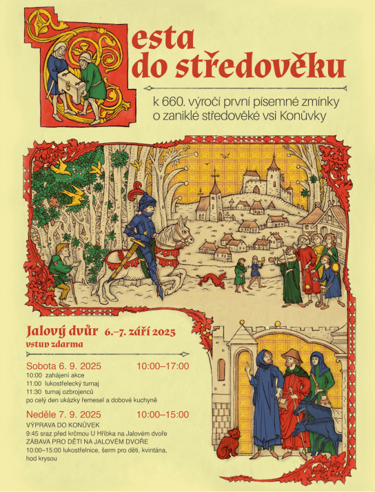 Dvoudenní akce Cesta do středověku k příležitosti výročí 660 let od první písemné zmínky o zaniklé středověké vesnici Konůvky se bude konat v sobotu 6. a neděli 7. září 2025.